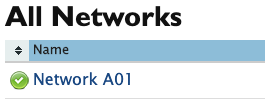 If the gateway status is green and the Lighting Network status is running, then the next step is to verify communications with the attached lights. In LightRules | Config | Networks, there is a table listing all networks. Click one of the networks in the Name column to access the network page for that gateway.