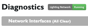 The Lighting Network must be running in order for the LRA to communicate with the attached fixtures. In LightRules | Config | Diagnostics there will be a rectangular icon noting the lighting network status in the top-left.
